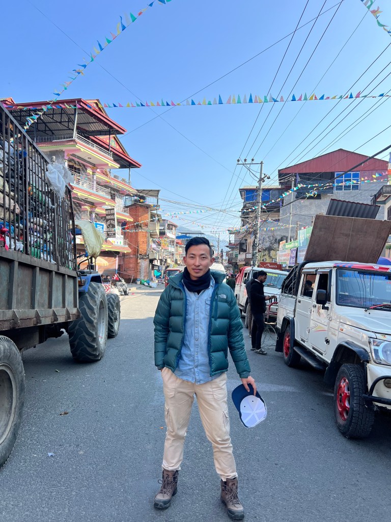 The journey from Besisahar onwards was on EKTA YATAYAT. Travellers can book a seat via their Instagram or Facebook. They are a provider trying to change the way people travel and reach Manang – which is commendable! We took a scenic route where the road also went through a tunnel (my first time driving inside a tunnel in Nepal) and gradually the vehicle climbed higher and higher. Dramatic landscape and rocky slopes surrounded us and the roads also became very bumpy. The Bolero vehicles really are built for such terrains! We stopped by Dharapani to meet some friends and had the luck to meet Dilli Jung Tamu (pictured) who is a historian of Tamu heritage and recipient of the Gorkha Dakshin Bahu.